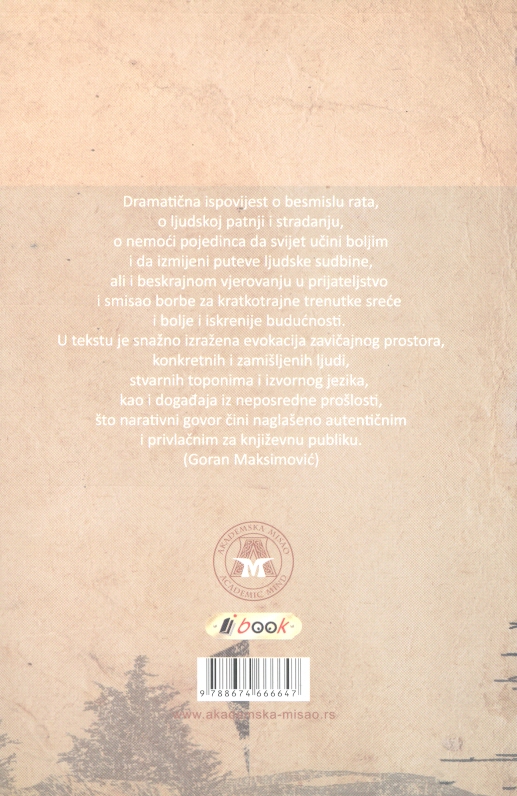 Ova dramatična ispovest vraća nas u vreme sukoba opisujući besmisao koji je tada vladao, ljude koji su stradali i patili nemoćni da svet učine boljim, ali i dalje verujući u prijateljstvo i u trenutke sreće, pa i u tu neku bolju budućnost.