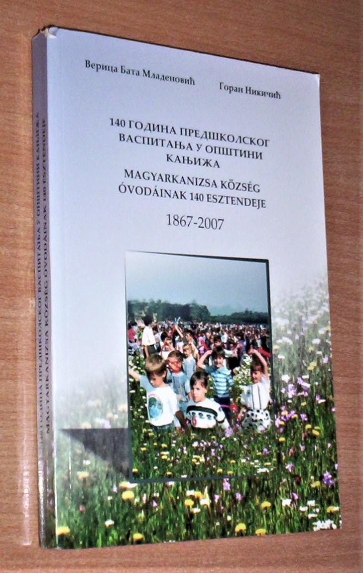 Verica Mladenović-Goran Nikičić: 140 GODINA PREDŠKOLSKOG VASPITANJA U OPŠTINI KANJIŽA (1867-2007), Kanjiža, 2008, srpsko-mađarski tekst, broširan povez, format 17 x 24 cm, strana 348, ilustrovano crno-belim fotografijama. Na predlistu posveta ranijeg vlasnika. Korišćen primerak, unutrašnjost čistih stranica i bez podvlačenja redova. Ne korespondiram SMS porukama. Ne prodajem knjige kupcima sa Kosova i ne šaljem u inostranstvo. Poštarina na teret kupca. Šaljem samo kao preporučenu tiskovinu.