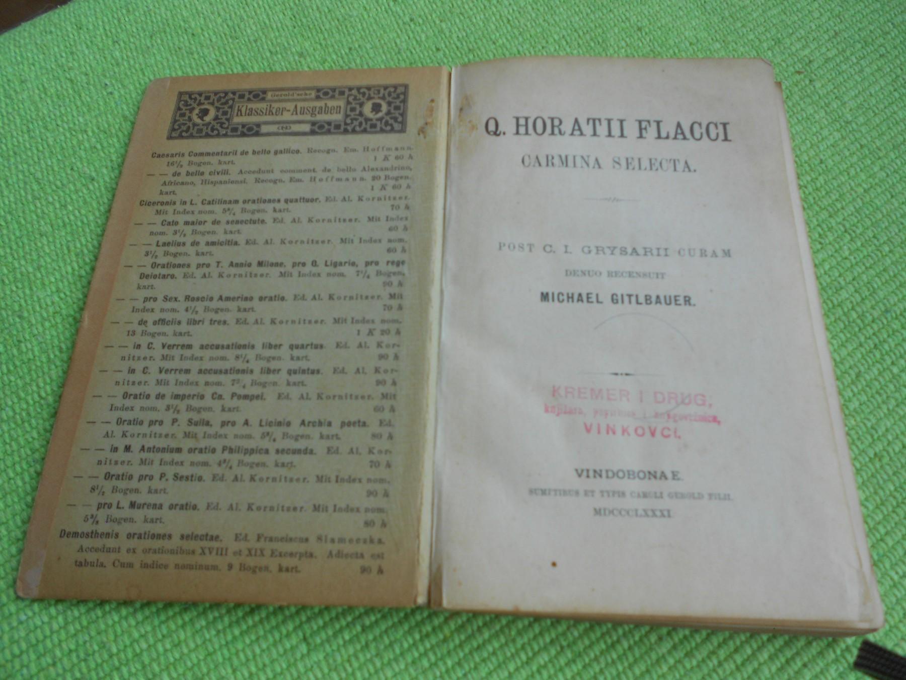 1881. Q. Horatti Flacci - Carmina Selecta - kolekcionarski primerak