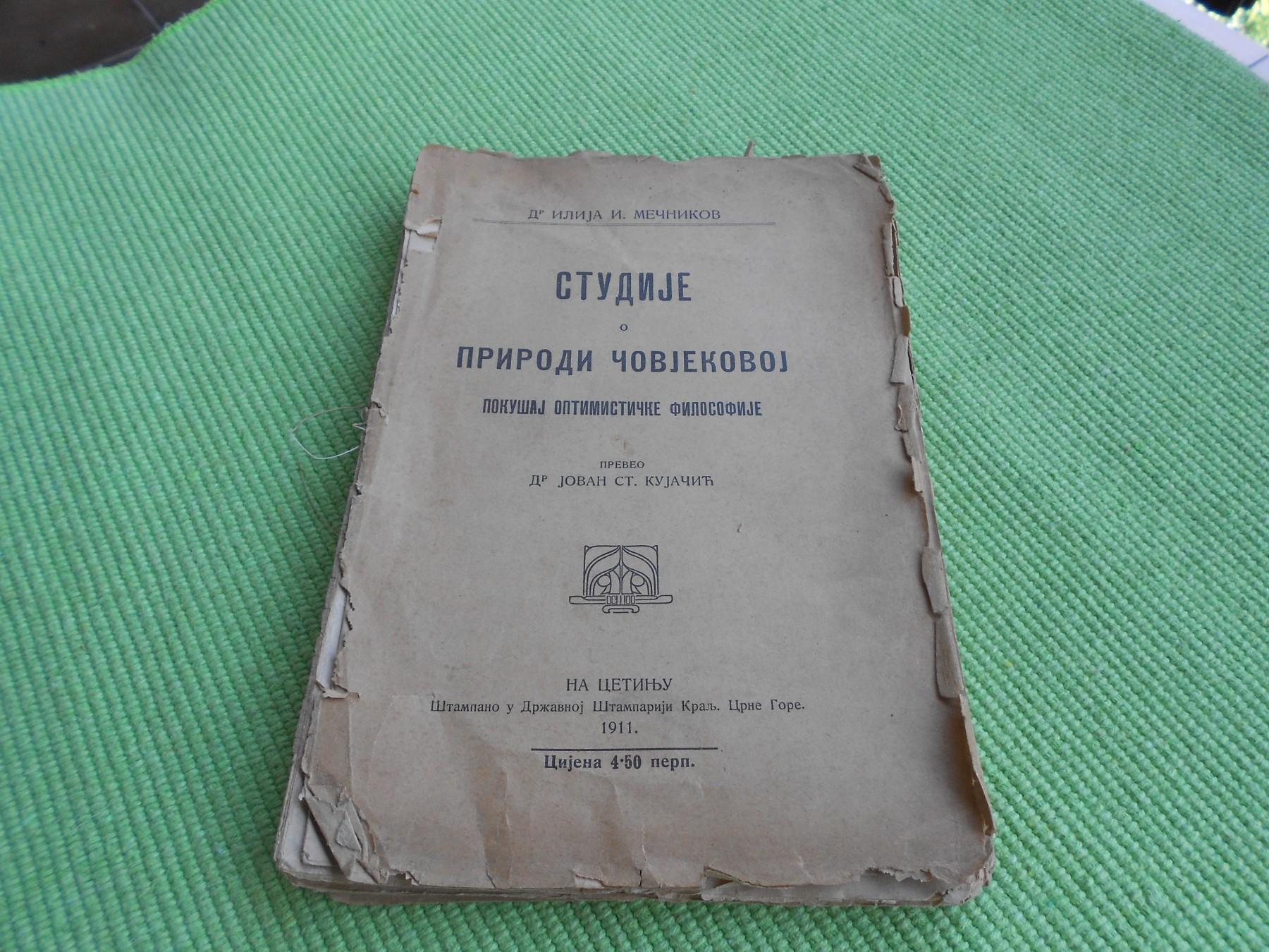Prodajem knjigu Dr Ivana I. Mečnikova "Studije o prirodi čovekovoj - Pokušaj optimistične filosofije". Državna štamparija Kraljevine Crne Gore na Cetinju 1911. godine.