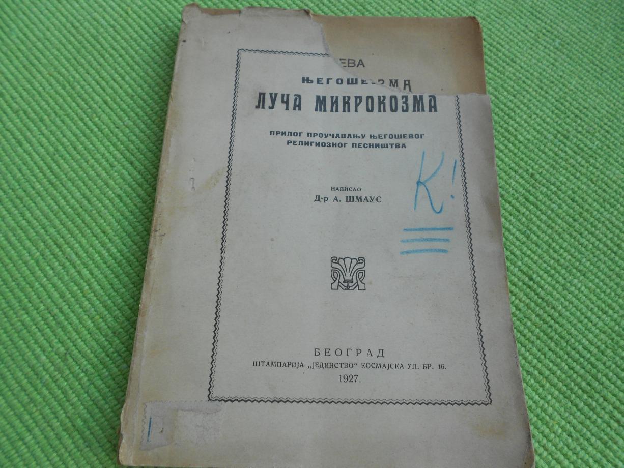Prodajem knjigu Dr A. Štrausa "Njegoševa Luča Mikrokozma". Štamparija jedinstvo beograd 1927. godine.