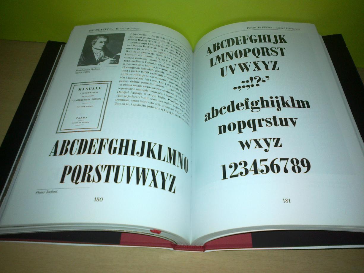 Knjiga govori o nastanku i razvoju pisma, istorijatu latinice i ćirilice, a predstavljeni su izabrani radovi naših eminentnih autora iz oblasti pisma – kaligrafije i tipografije.