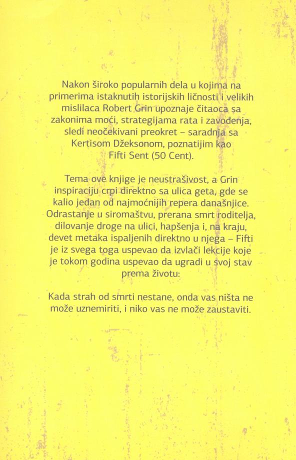 Ova knjiga rezultat je saradnje između Roberta Grina i poznatog američkog repera Fiftija Senta. Ova knjiga će vam pomoći da ostvarite sve ono što ste oduvek želeli kako biste vodili život iz snova. Ova knjiga će vam pomoći da ostvarite uspeh na svim poljima života vodeći se samo jednim jedinim principom ne bojati se ničega.