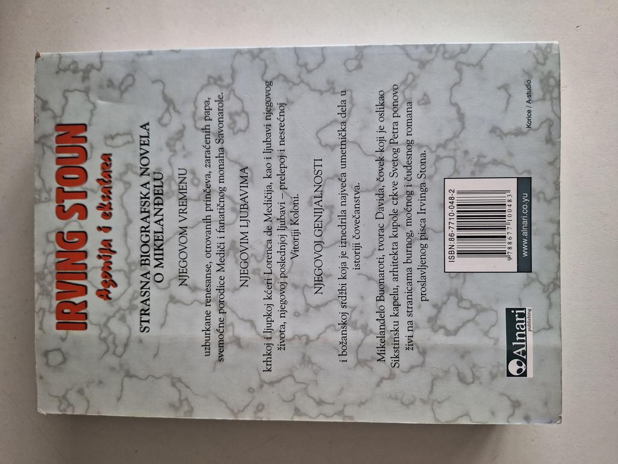 Mikelanđelo Buonaroti, tvorac Davida, čovek koji je oslikao Sikstinsku kapelu, arhitekta kupole crkve Svetog Petra ponovo živi na stranicama burnog, moćnog i čudesnog romana proslavljenog pisca Irvinga Stona.