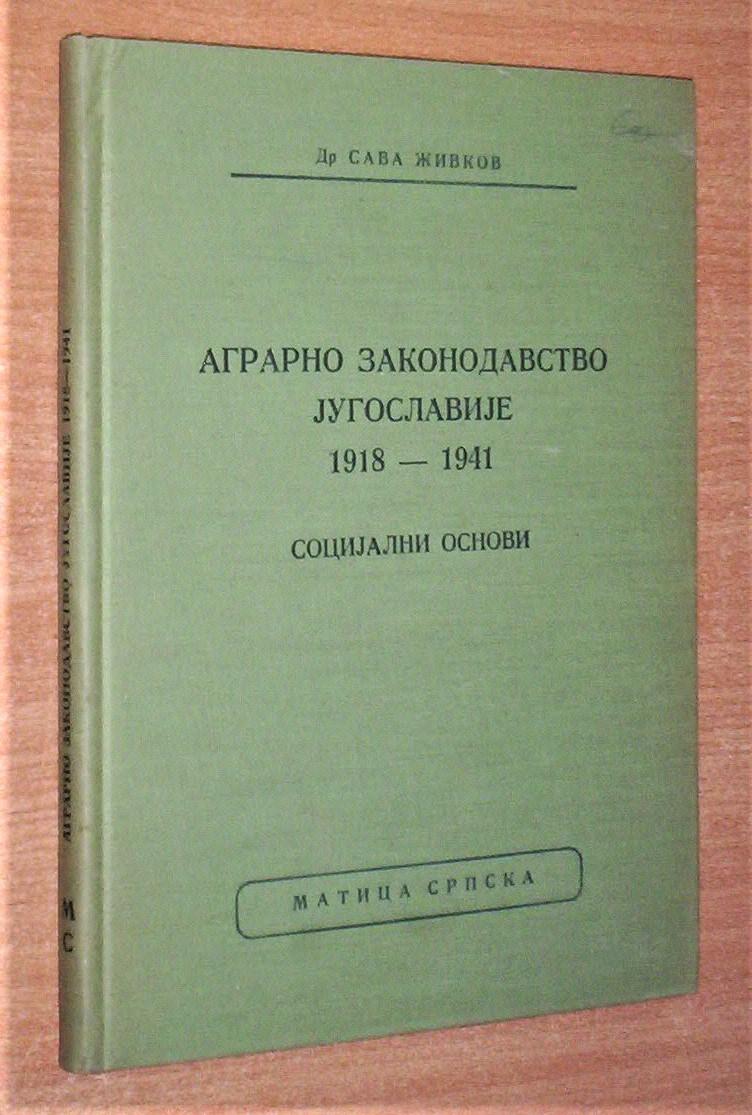 Sava Živkov: AGRARNO ZAKONODAVSTVO JUGOSLAVIJE 1918-1941 (Socijalni osnovi), Novi Sad, 1976, tvrde korice, kožni povez šivenjem, format 17 x 24 cm, strana 152, korišćen primerak. Na predlistu potpis i pečat vlasnika, unutrašnjost čistih stranica i bez podvlačenja redova. Ne korespondiram SMS porukama. Ne prodajem knjige kupcima sa Kosova i ne šaljem u inostranstvo. KUpac plaća poštarinu.