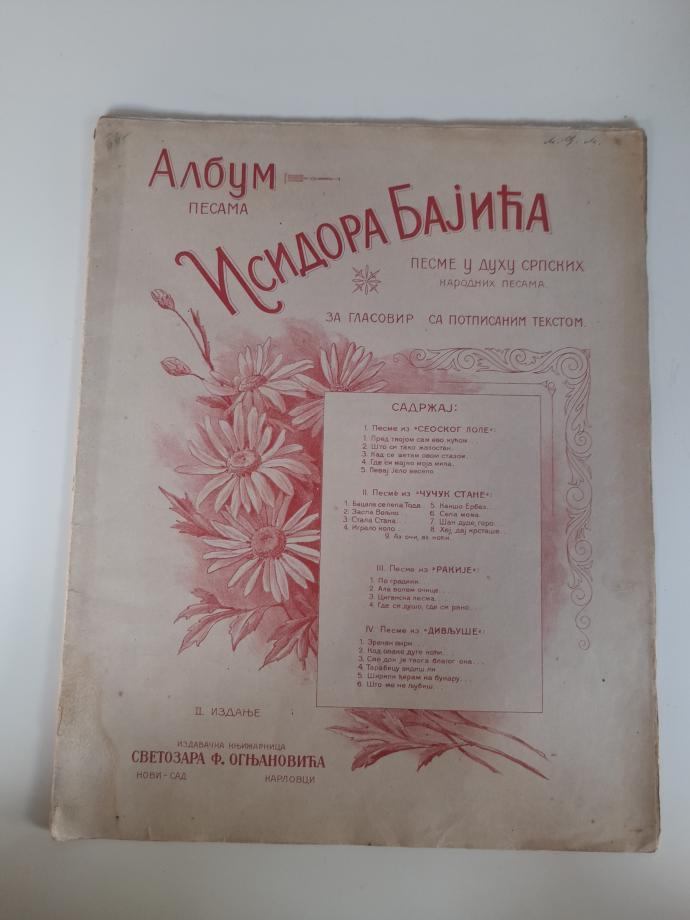 Album pesama Isudora Bajića - pesme u duhu srpskih narodnih pesama za glasovir sa potpisanim tekstom
