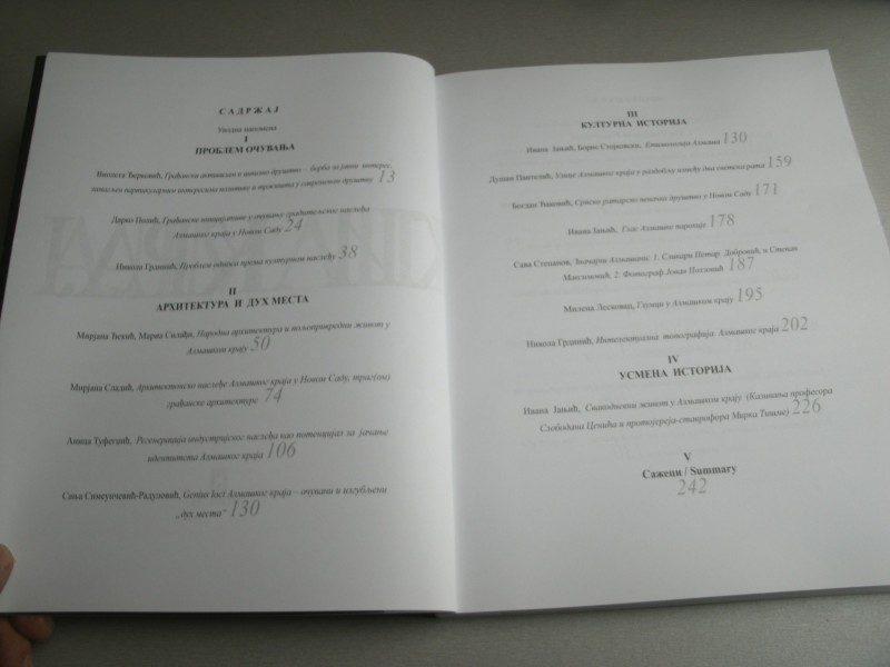 Izrada i objavljivanje zbornika radova „Almaški kraj“ - urednik zbornika prof. dr Nikola Grdinić (dobitnik nagrade „Iskre kulture“ za životno delo 2013. godine), saradnik prof. dr Nađa Kurtović Folić. Zbornik osvetljava istoriju Almaškog kraja sa urbanističko - arhitektonskog, kulturnog i društveno - istorijskog aspetka i predstavlja kulturni argument za njegovo očuvanje i razvoj. Udruženje je obezbedilo i sredstva za štampanje Zbornika - od jednog od članova udruženja.