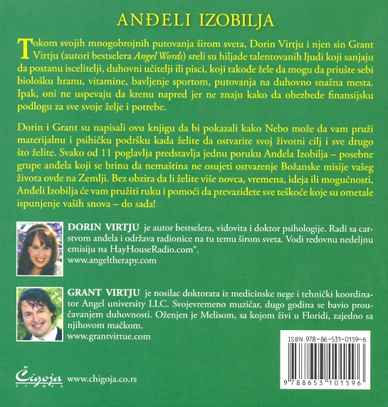 Knjiga koja opisuje kako Nebo može da nam pomogne kada želimo da ostvarimo svoj životni cilj. Anđeli Izobilja su posebna grupa anđela koji se brinu da nemaština ne osujeti ispunjenje naših snova, a svako od poglavlja u knjizi predstavlja jednu njihovu poruku.