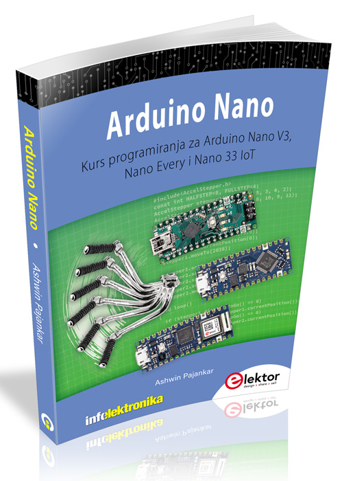 Sedam poglavlja u ovoj knjizi služe kao prvi korak za početnike i ljubitelje mikrokontrolera koji žele da steknu prednost u Arduino programiranju. U prvom poglavlju su predstavljeni Arduino platforma, ekosistem i postojeće varijante Arduino Nano ploča. Takođe ćete naučiti kako da instalirate različite alatke potrebne za početak Arduino programiranja. Drugo poglavlje počinje izradom elektronskih kola i programiranjem na vašem Arduinu. U trećem poglavlju istražujemo različite magistrale (buses) i analogne ulaze. U četvrtom poglavlju upoznaćete koncept modulisanja širine impulsa (PWM - Pulse width modulation) i rad u jednopolarnim koračnim motorima.