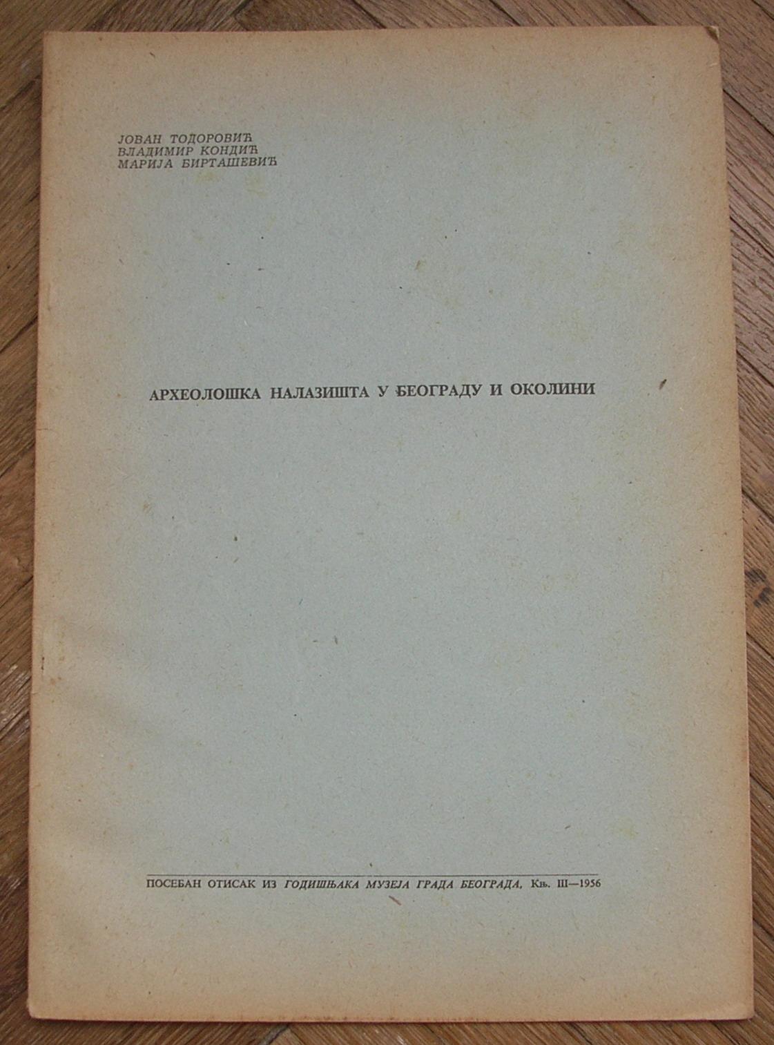 Arheološka nalazišta u Beogradu i okolini (otisak iz godišnjaka)