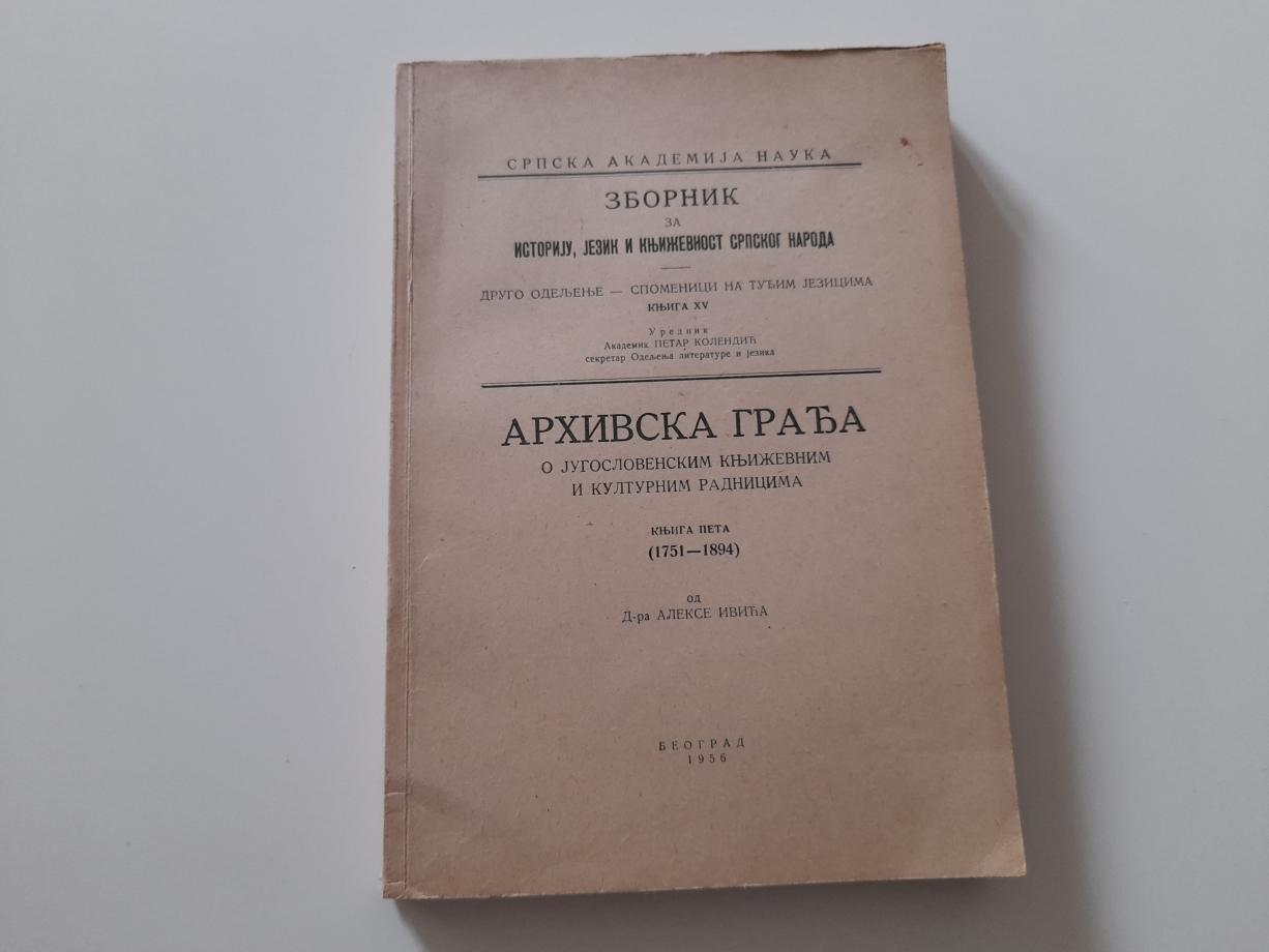 Arhivska građa o jugoslovenskim književnim i kulturnim radnicima - Knjiga peta (1751-1894).
