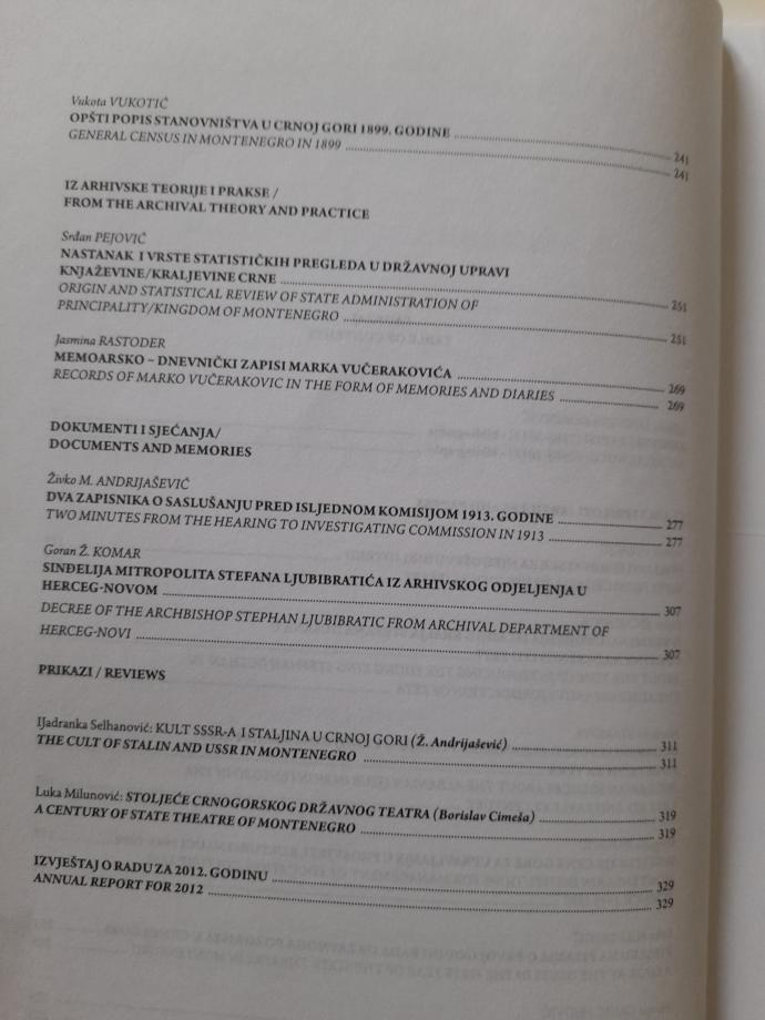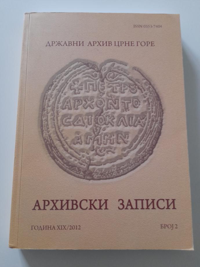 Arhivski zapisi broj 2 - 2012, Državni arhiv Crne Gore