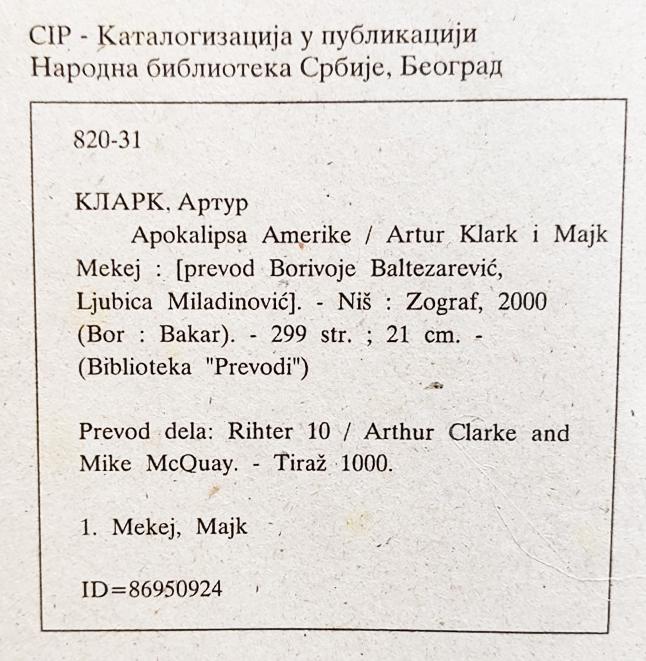 Artur Klark Apokalipsa Amerike