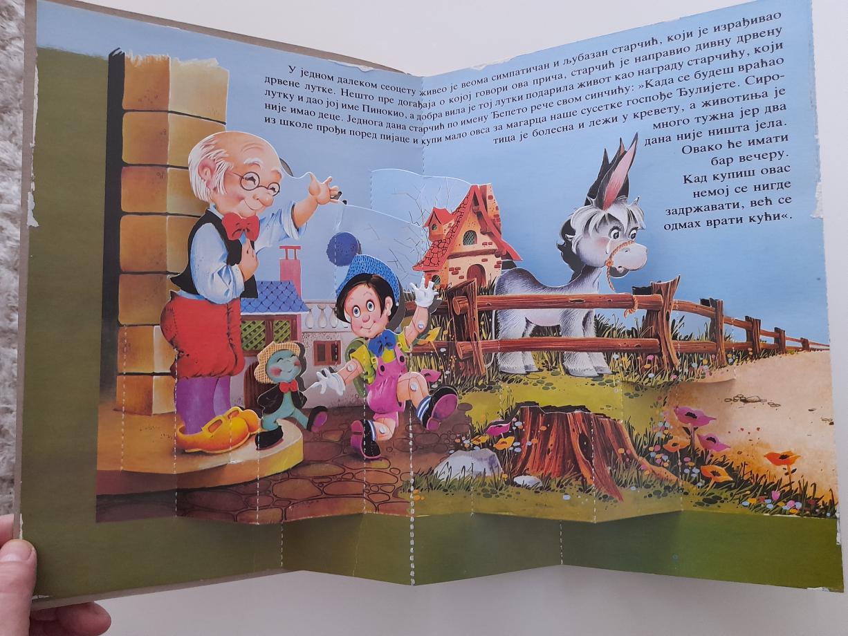 `Pinokio` Karla Kolodija, klasik o nestašnom drvenom lutku koji želi postati pravi dečak, dostupan je u mnogim izdanjima prilagođenim deci, uključujući bogato ilustrovane slikovnice i 3D verzije. Priča prati Đepetovog sina kroz poučne avanture, a originalno je objavljena 1883. godine.