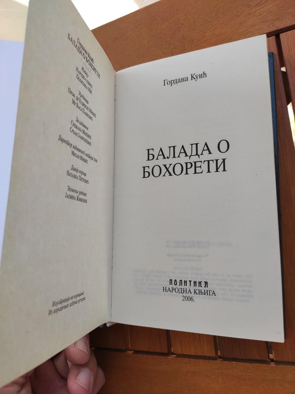`Roman Gordane Kuić Balada o Bohoreti jeste jedna od uverljivijih priča o prolaznosti i o ljudskom udesu, ali i o ljubavi i o njenim vrstama. Ispričana kroz roman odrastanja, kao dnevnik jevrejske devojčice Laure Levi, ova priča u dnevničko-epistolarnoj formi, celinom i punoćom percepcije deteta i životnim entuzijazmom mlade osobe, oslikava zajednice sefardskih Jevreja s kraja XIX i početka XX veka u Istambulu i Sarajevu.