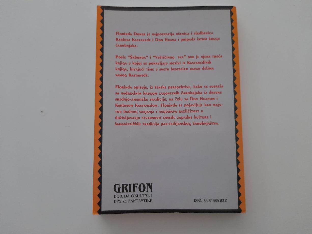 Florinda Doner je najpoznatija učenica i sledbenica Karlosa Kastanede i Don Huana pripada istom krugu čarobnjaka. Posle Šabonoa i Veštičinog sna ovo je njena treća knjiga u kojoj se ponavljaju motivi iz Kastanedinih knjiga, bivajući time u svetu bestseler ravan delima samog Kastanede.