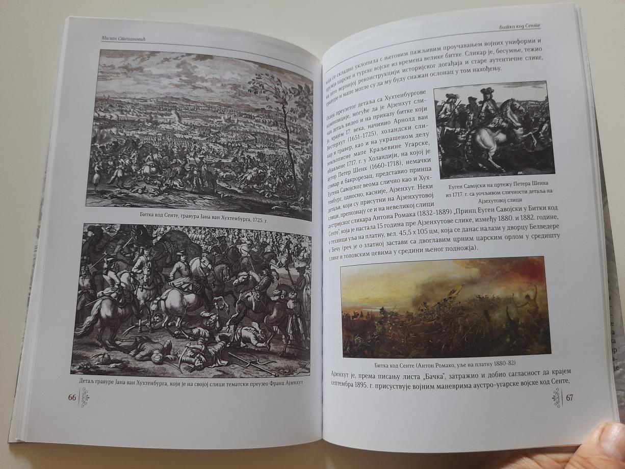 Studija o Bitki kod Sente (1697), princu Eugenu Savojskom, znamenitoj i monumentalnoj slici sa motivom ove bitke (7 x 4 metra), koja se nalazi u zdanju somborske Županije, o njenom slikaru Francu Ajzenhutu, te o zdanju Županije u Somboru.