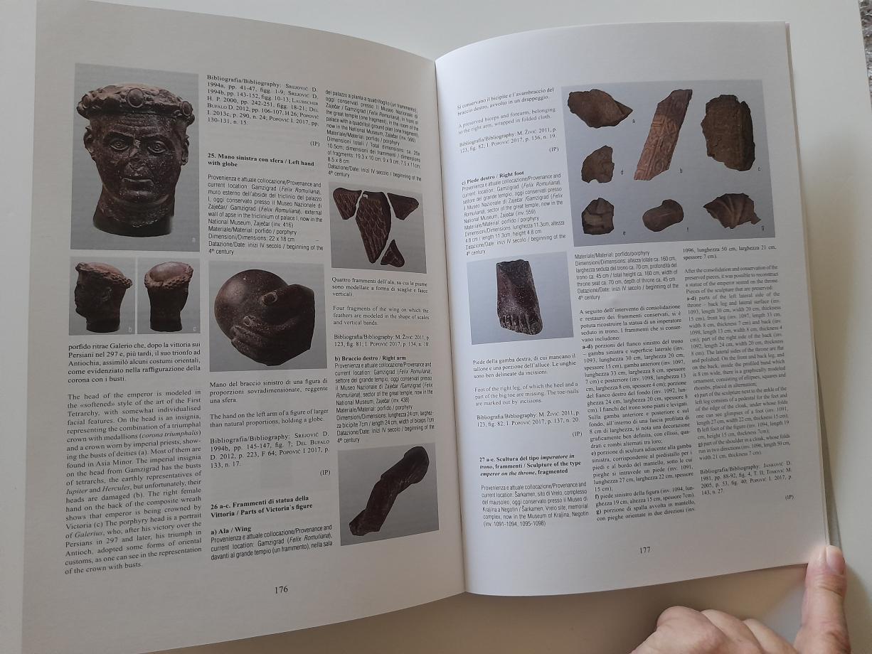 Katalog izložbe u Akvileji (Ud), Palata Meizlik 2018. Tvrđave, carske rezidencije, prosperitetni gradski okruzi, cvetajuća trgovina, koegzistencija kultura i znaci različitih verskih uticaja i novi senzibiliteti koji dolaze iz Rima i sa Istoka: to su osnovni elementi na koje mislimo kada govorimo o „sjaju rimske Srbije“, zemlje koja je doživela izuzetan razvoj u 3. i 4. veku i u kojoj je rođeno 17 ili 18 careva, od Hostilijana do Konstancija III, spominjući Konstantina Velikog, rodom iz Naisusa (Niša). Teritorija koja je posedočila gradnji grandioznih carskih vila, poput onih u Feliks Romulijani, danas Gamzigradu, ili novih centara, što u slučaju Sirmijuma, danas Sremska Mitrovica, uključuje prisustvo cirkusa, elementa koji su transformisali urbano naselje u veliki i važan grad.