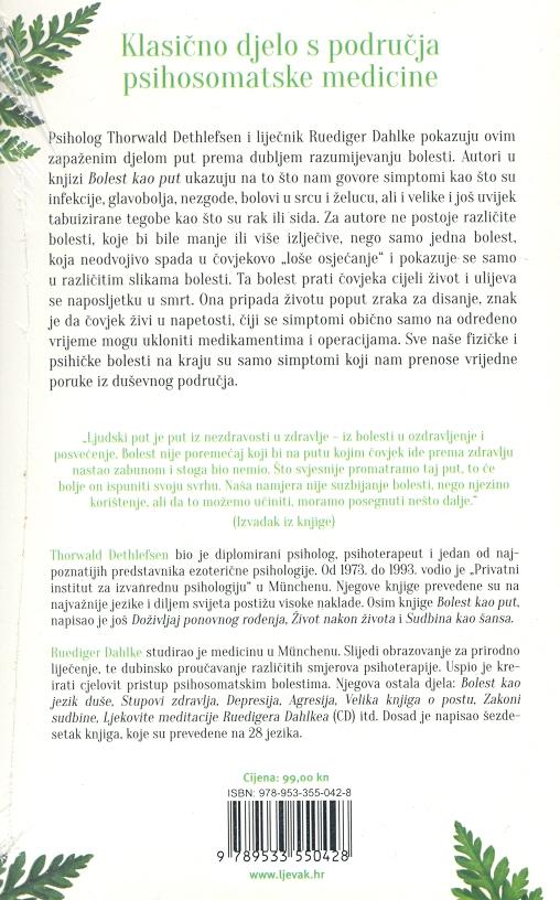 Knjiga ukazuje na to što nam govore simptomi kao što su infekcije, glavobolja, nezgode, bolovi u srcu i želucu, ali i velike i još uvek tabu ’’tegobe’’ kao što su rak ili sida.