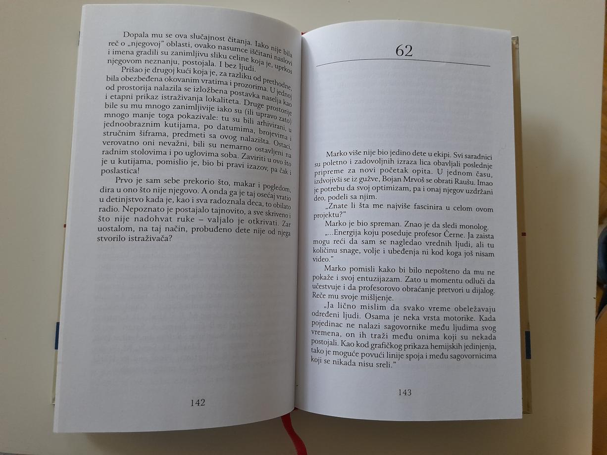 Uzbudljiva priča puna dinamike i akcije, preokreta i neobičnih i zaprepašćujućih otkrića o ekologiji i zločinu, o Vinči kao kulturi i o Vinči kao nuklearnom institutu, o utopistima među kojima posebno mesto pripada Dimitriju Mitrinoviću, o Podunavlju i Beogradu, o ljubavi i izdaji, o nuklearnom otpadu i maloj za vereničkoj grupi koja utopijom pokušava da odbrani svoj svet.