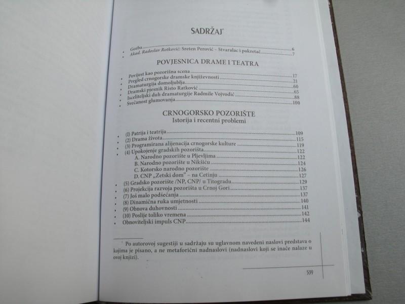 Knjiga Sretena Perovića “Crnogorci na sceni”, koja se pojavila u ediciji “Zetski dom” u sklopu jubileja 60-godina CNP, koncipirana je kao tematski zbornik njegovih tekstova o crnogorskoj drami i pozorištu. Okvir ovoga zbornika dat je i podnaslovom: “dramska književnost, teatrološki spisi, pozorišna kritika, 1957-2007”. Autor predgovora (“Sreten Perović, stvaralac i pokretač”) je Radoslav Rotković. Knjiga sadrži 11 poglavlja u kojima je Perović svrstao svoje tekstove i druge priloge po tematskom i formalnom određenju. Za CNP posebnu važnost ima poglavlje “Crnogorski autori na sceni CNP”, u kome je Perović sabrao, hronološki kako su objavljivane, svoje pozorišne kritike o predstavama nacionalnog teatra rađenim po crnogorskoj literaturi, što čini 54 teksta koja tretiraju gotovo šestinu ukupnog repertoara CNP, od 1957. do 2007. godine. Značajno je i poglavlje “U hramu podśećanja”, o dvadeset pozorišnih stvaralaca, među kojima su i velika imena crnogorskog glumišta: Ana Nikolić-Kačanik, Nada Blažević, Miloš Jeknić, Petar Begović, Veljko Mandić, Boro Begović, Zlata Raičević, Čedomir Vukanović, Petar Tomas, Ljubica Šarkić i dr. Knjiga je opremljena indeksom pozorišnih predstava i indeksom imena.