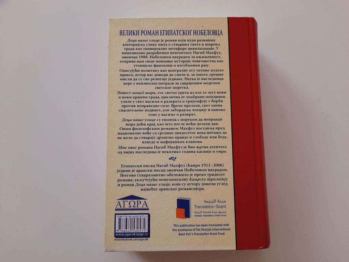 Deca naše ulice je roman koji nudi razvijenu alegorijsku sliku mita o stvaranju sveta i širenju grada kao univerzalne metafore civilizacije. U minuciozno razrađenom pentaptihu Nagib Mahfuz, ovenčan 1988. Nobelovom nagradom za književnost, otkriva nam svoje poimanje istorije čovečanstva kao utopijske fantazije o izgubljenom raju.
