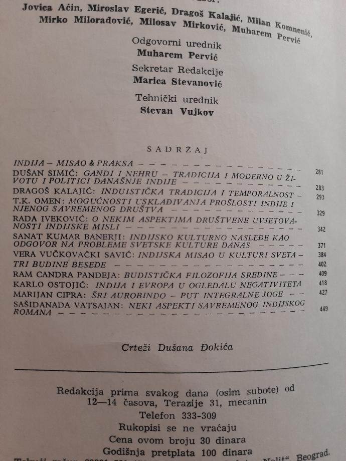 Dragoš Kalajić, Dušan Simić, T. K: Omen, Rada Iveković, Ram Candra Pandeja...