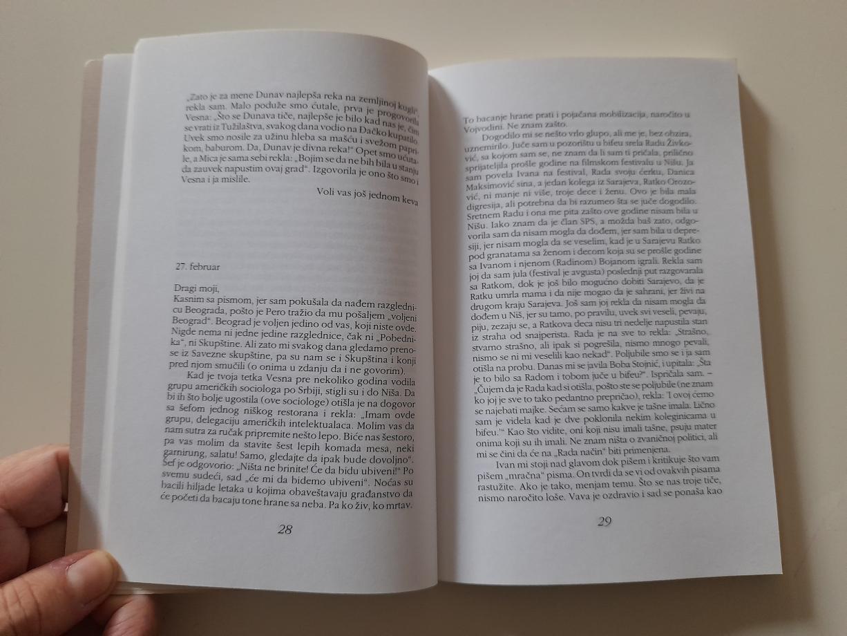 U danima ne tako davnim, 1993. i 1994. godine, u najtežim i najsramnijim našim danima, porodica Stanislave Pešić, jedne od najpoznatijih i najboljih naših dramskih umetnica, doživljava ono, u ćemu smo bili svi mi, sa ove, naše strane, bojama smrti, poniženja i bede obojeni. Pisma sinu Peri, njegovoj porodici, najčešće su najlepše i najpotresnije stranice ispisane malom Vladanu, Stašinom unuku, koji sa roditeljima mora da podeli sudbinu mnogih izgnanika. Oni nisu » tako daleko« , tek u » nedalekom« Pragu, tako da još uvek postoji mogućnost komuniciranja, iako u izuzetno komplikovanim uslovima. Ono što se svima nama dešava, kod Staše Pešić je isprepleteno i sa teškom bolešću, i od tada pisma jos pojačanije govore o nacionalnom debaklu i njenoj ličnoj, ljudskoj sudbini. Hrabra, bespoštedna i prema sebi i prema drugima kada je reč o istini, Stanislava Pešić je napisala tako potresnu i tako uznemirujuću, i u najboljem literarnom smislu, knjigu koja može da izmeni misli i život onih ljudi koji će je pročitati. » Kome zvoni zvono, tebi zvoni! « , zapisuje Staša svaku svoju misao, i tako njena pisma, poput pozorišnog komada, imaju svoj jak naboj, svoju snagu i sopstveni ritam. Tako Pešićeva, duhovita, šarmantna, hrabra, istrajna, kada zapisuje, ima pred sobom uvek ljude podeljene na one dobre i one koji to nikada neće biti. U pismima, ona je obuzeta emocijama koje nisu samo lične, koje se ne tiču samo nje i njene porodice, već je tu mnogo misli i briga vezanih za svet oko nje i sve nas. Situacija sa krajem komada zvanog » šta nam rade i šta će nam sve još uraditi« deluje samo na izgled kao konfuzan završetak. Knjiga nema pravi, literarni kraj, već je suočenje sa svim, rešenja nema i to gledanje istini u oči guši i muči. Ako mislimo da čovek čitavog svog kratkog i ništavnog života radi uvek samo jednu te istu stvar, treba čitati knjigu ove hrabre i istrajne žene, koja i u samom svom životu i u pisanju teži da uvek i samo bude što bliže izvoru istine. Ona se sasvim i kroz sopstvenu bolest i kroz nacionalnu sramotu oslobodila mnogih beskorisnosti i strahova. Napisala je nama i njoj Devetnaest društvenih igara, kao svoju nasušnu potrebu.