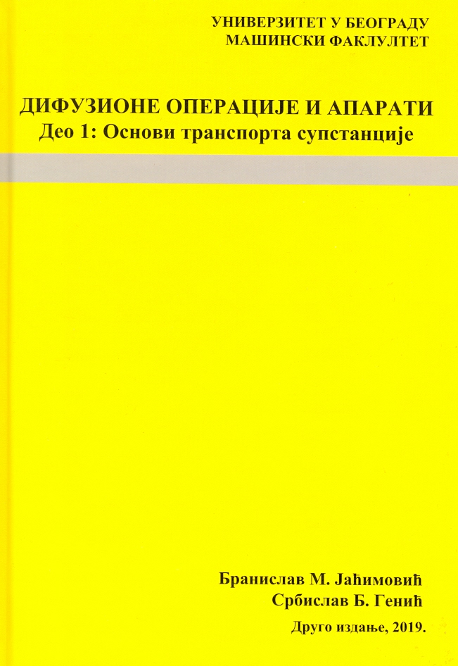Prvi deo udžbenika Difuzione operacije i aparati - Osnovi transporta supstancije. Udžbenik je namenjen studentima Mašinskog fakulteta, katedra za procesnu tehniku.