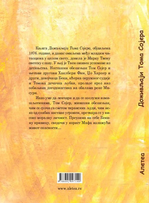 Roman Marka Tvena Doživljaji Toma Sojera objavljena je pre 147 godina i još spada u jedno od omiljenih knjiga za čitanje među mladima, a i starijima, u celom svetu.