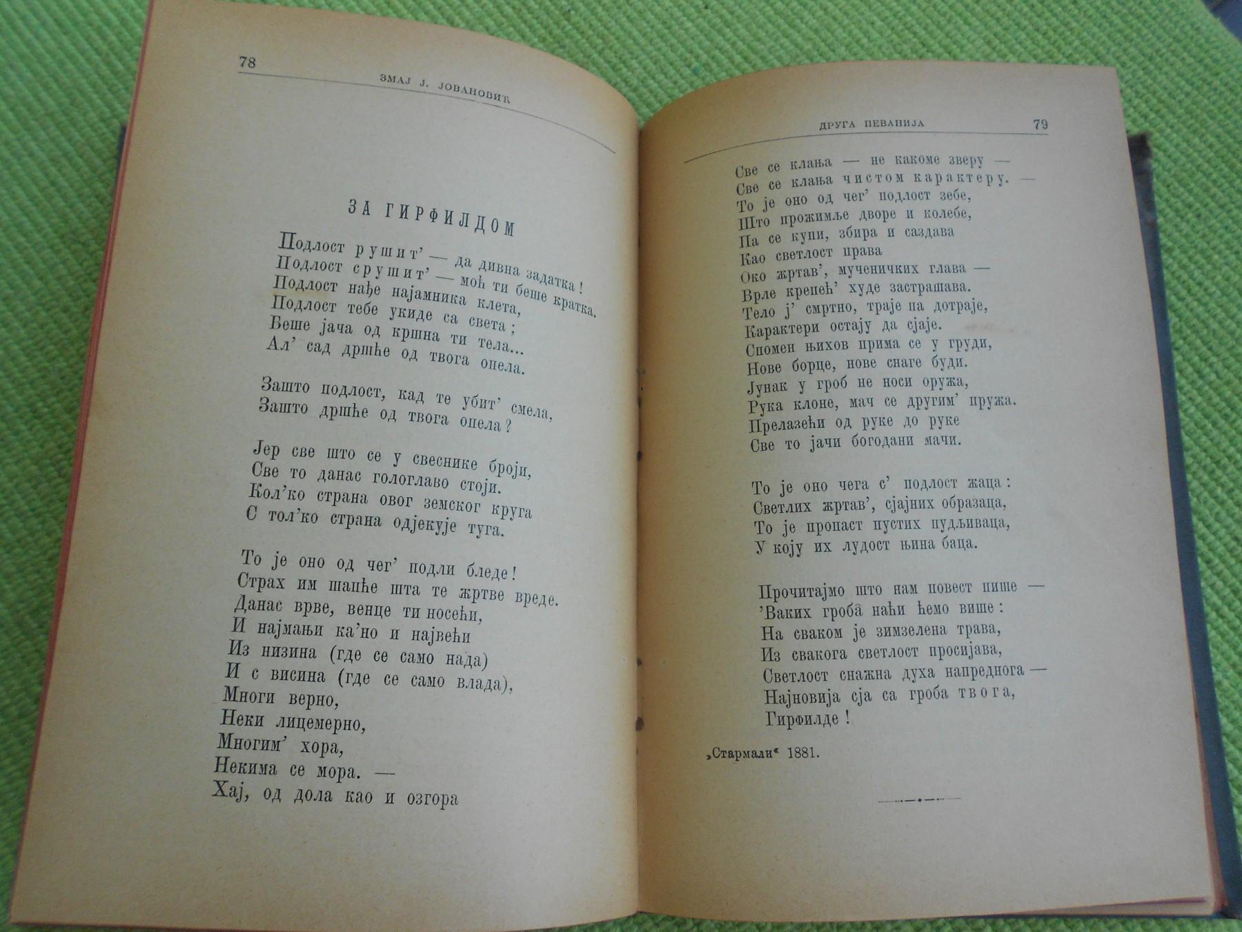 Prodajem knjig Zmaja Jovana Jovanovića "Druga pevanija - sveska I". Srpska književna zadruga, Beograd, 1895. godine.