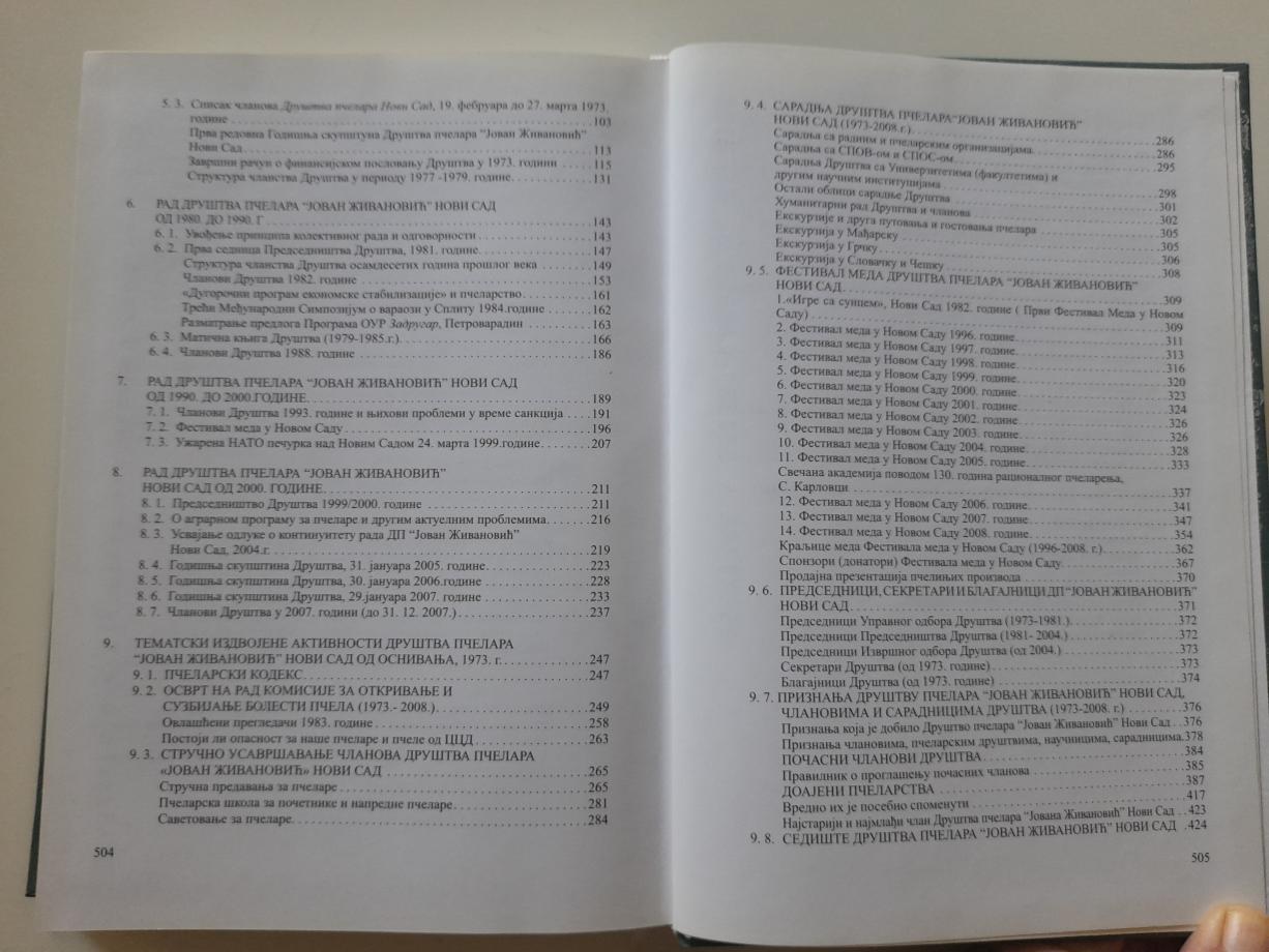 Obuhvata nastojanje pčelarskih entuzijasta, počev od uvažene istorijske ličnosti prof. Jovana Živanovića sa njegovom aktivnošću, pa do danas do izlaska ove monografije, zatim radost pčelarenja i tretiranje ove vrste rada od strane pčelara kao poziva i kao fine tradicije koja traje i daje. Obuhvata period same organizacione forme udruženja, ljudi koji su u njemu, epsku, poetsku, teorijsku i kartografsku crtu u jednu skladnu celinu. Zatim, ljude i događaje koji su uticali i na pčelarenje i na organizovanje pčelara i sve to ima smisla za nastanak, razvoj i organizaciono delovanje pčelara, posebno onih koji su se rojili oko ovog društva, svih tih decenija.