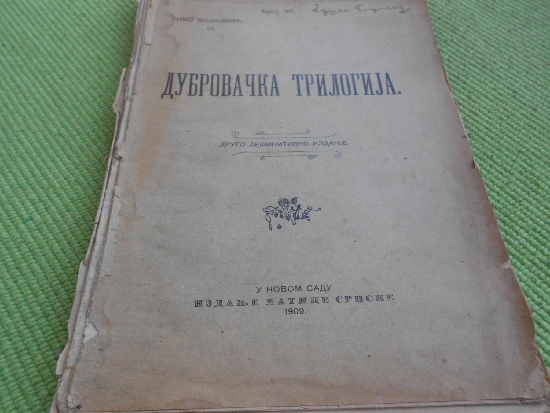 Prodajem knjigu Iva Vojnovića "Dubrovačka trilogija". Izdanje Matice srpske u Novom Sadu 1909. godine.
