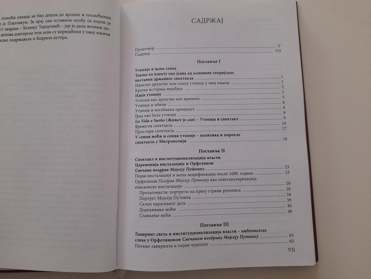 Knjiga dr Jelene Todorović definiše ideologiju i strukturu baroknih javnih svečanosti, tumači njihovo prihvatanje u simboličnoj politici karlovačkih mitropolita, analizira specifične forme i njihovo ideološko značenje. Ovo delo je rezultat višegodišnjeg sistematskog istraživanja izvora kao i izuzetnog poznavanja literature. Pisano je nadahnuto, precizno i jasno. Na taj način dobijena je knjiga izuzetno visokih kvaliteta koja, sa jedne strane,precizno i sveobuhvatno tumači javne svečanosti karlovačkih mitropolita, a sa druge, uklapa ih u šire evropske okvire. Poseban kvalitet ove knjige predstavlja sposobnost autora da složenu problematiku, zasnovanu na učenoj baroknoj kulturi, saopšti jasno i na način prihvatljiv savremenim shvatanjima.