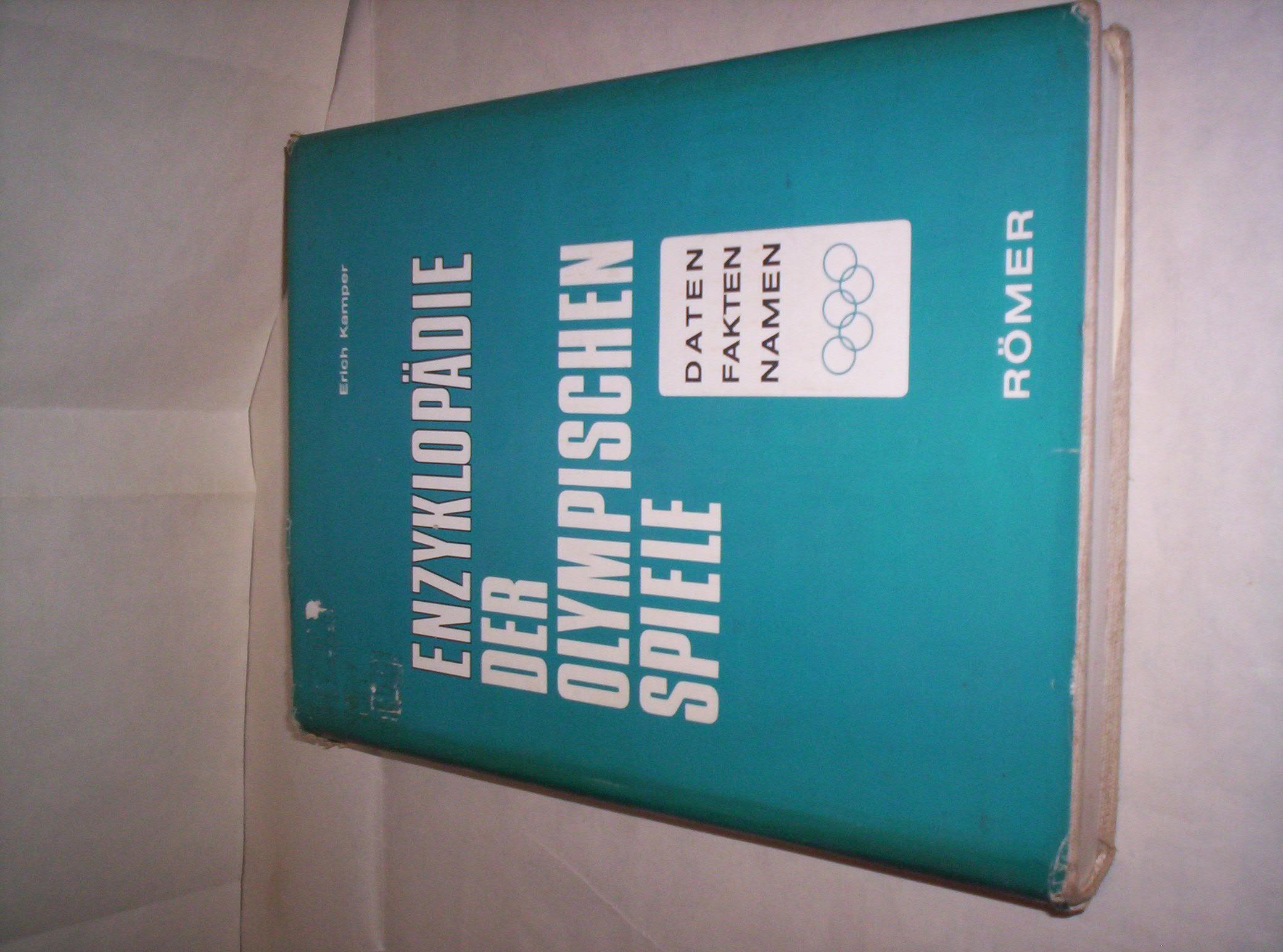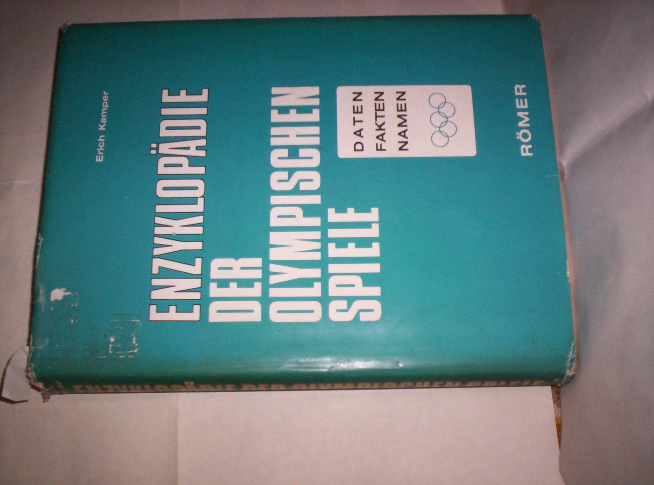 Erich Kamper: ENZYKLOPÄDIE DER OLYMPISCHEN SPIELE (Daten, Fakten, Namen), Römer Verlag, Stuttgart, 1972, format 22 x 30 cm, strana XIX + 360, uporedni trostubačni tekst na nemačkom, engleskom i francuskom jeziku, tvrde korice sa zlatotiskom, povez šivenjem, zaštitni omot sa klapnama. Kompletni rezultati od 1896. do 1972. godine u svim sportovima, sa svim pobednicima, pojedinačno i grupno (ekipno), muškarci i žene. Omot malo oštećen. Ima potpis i pečat vlasnika. Korišćeno. Stranice čiste i bez podvlačenja redova. Šaljem po uplati. Ne korespondiram SMS porukama. Ne prodajem knjige kupcima sa Kosova i ne šaljem u inostranstvo. Poštarina na teret prodavca.