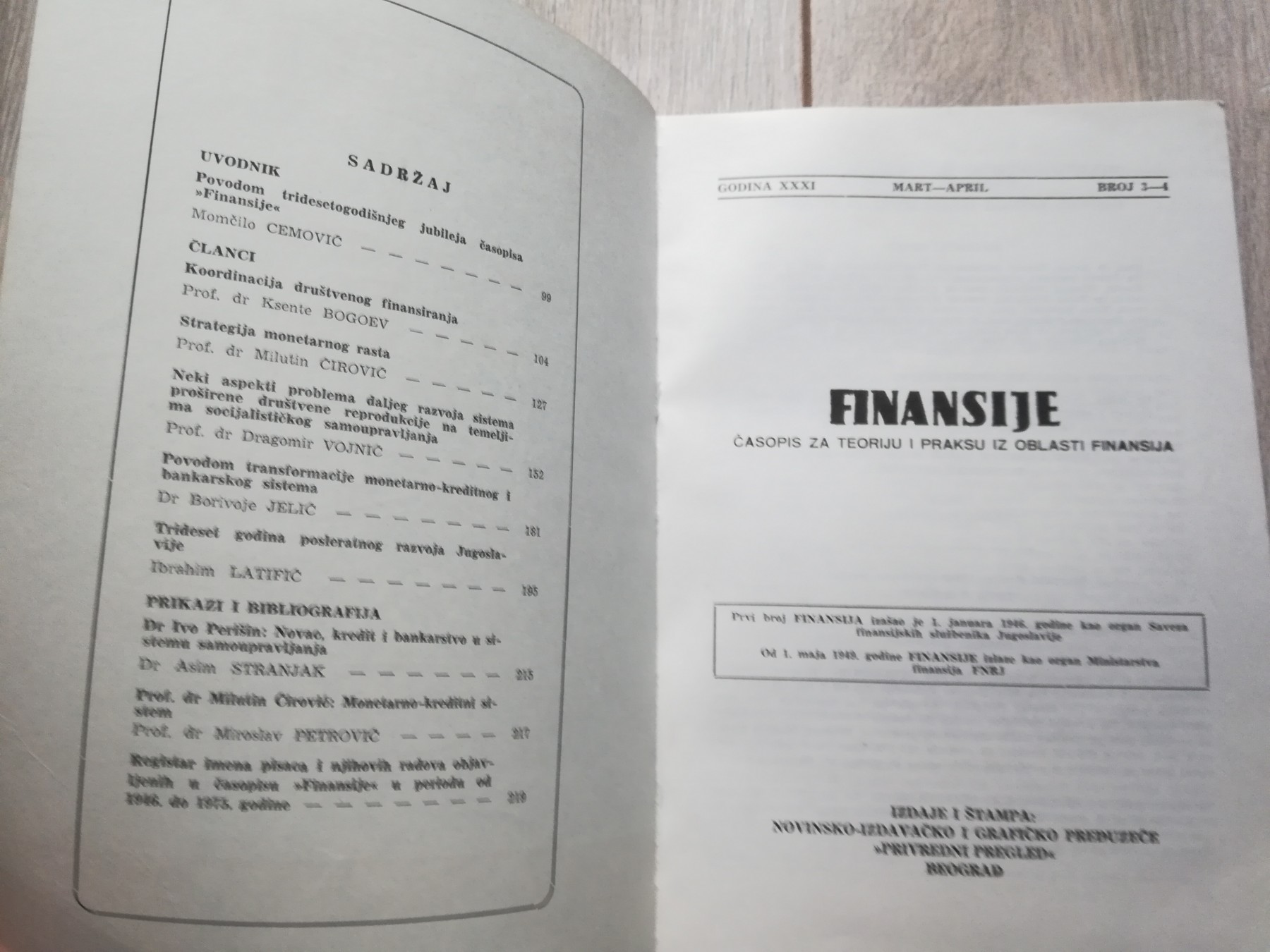 Časopis za teoriju i praksu iz oblasti finansija, broj 3-4, Beograd 1976., 268 str.