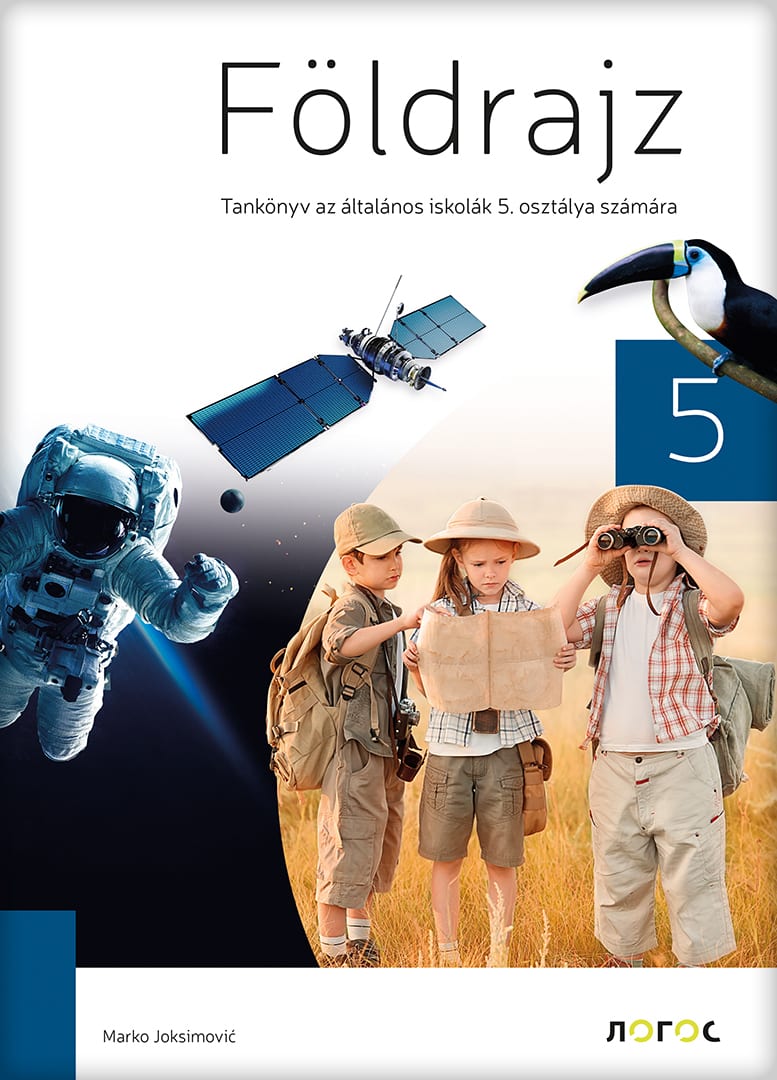 Udžbenik Novog Logosa iz geografije za peti razred osnovne škole na mađarskom jeziku.