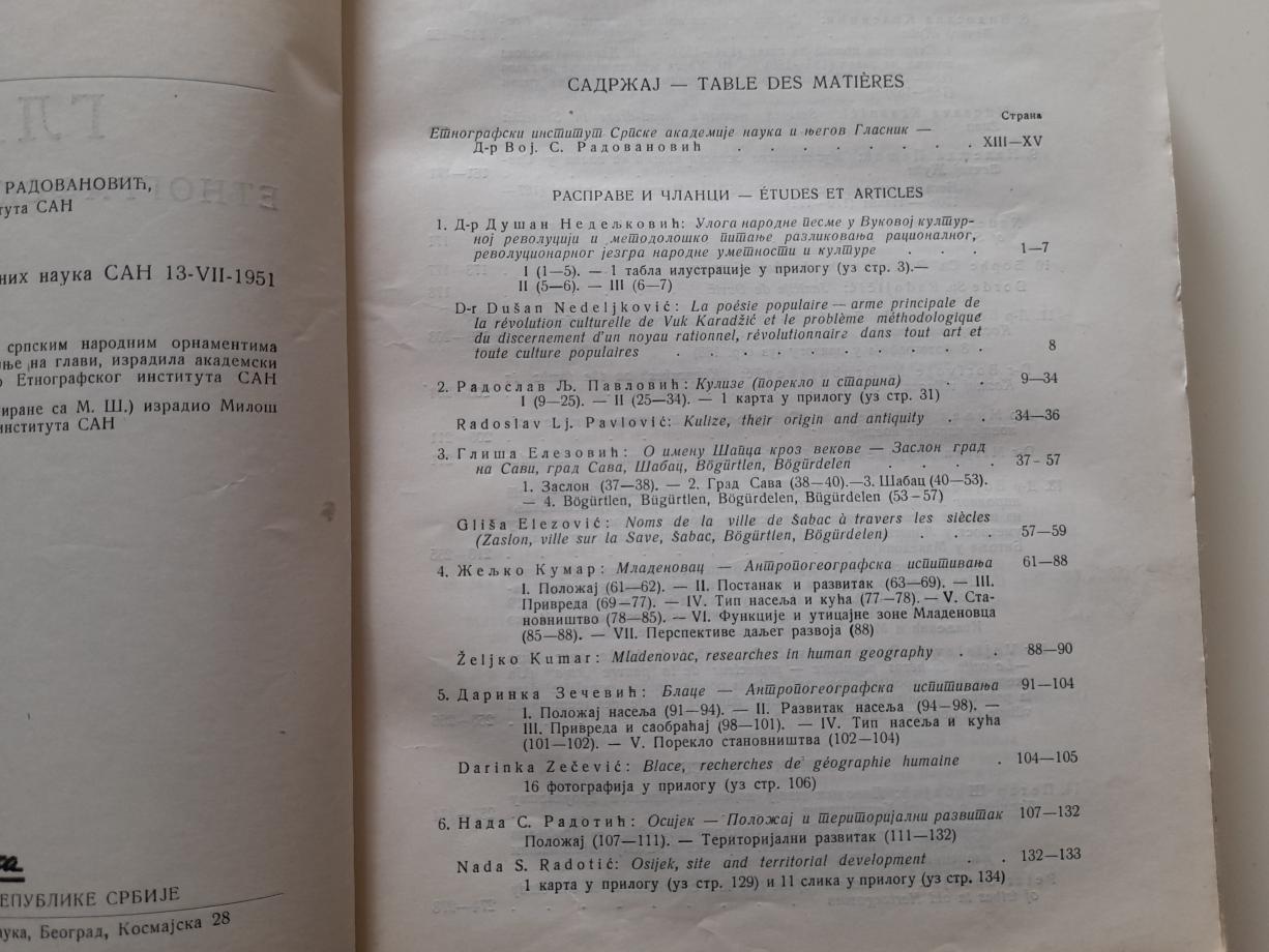 Glasnik Etnografskog instituta SAN I (1-2), 1952