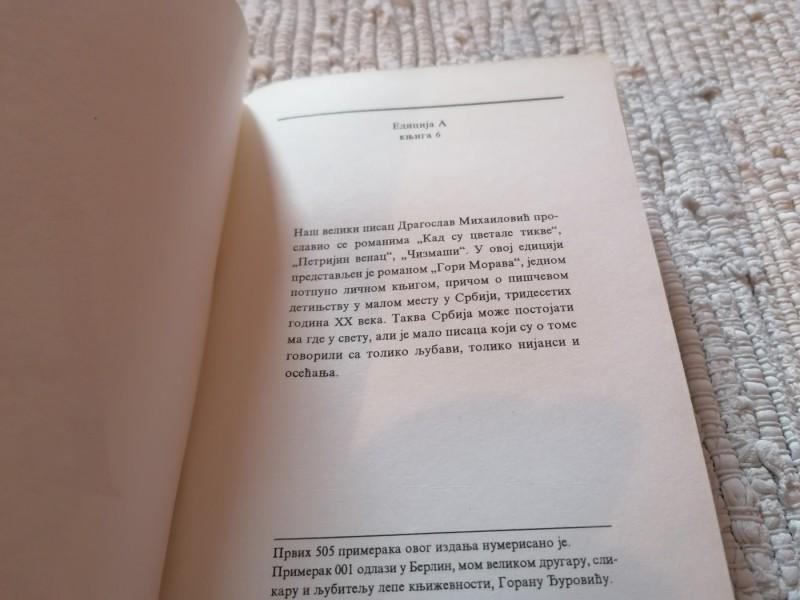 „ Po izvornosti i emotivnoj energiji, roman Gori Morava možda je najsnažnije delo Dragoslava Mihailovića, pisca koji je srpskoj književnosti dao Kad su cvetale tikve, Petrijin venac i Čizmaše.