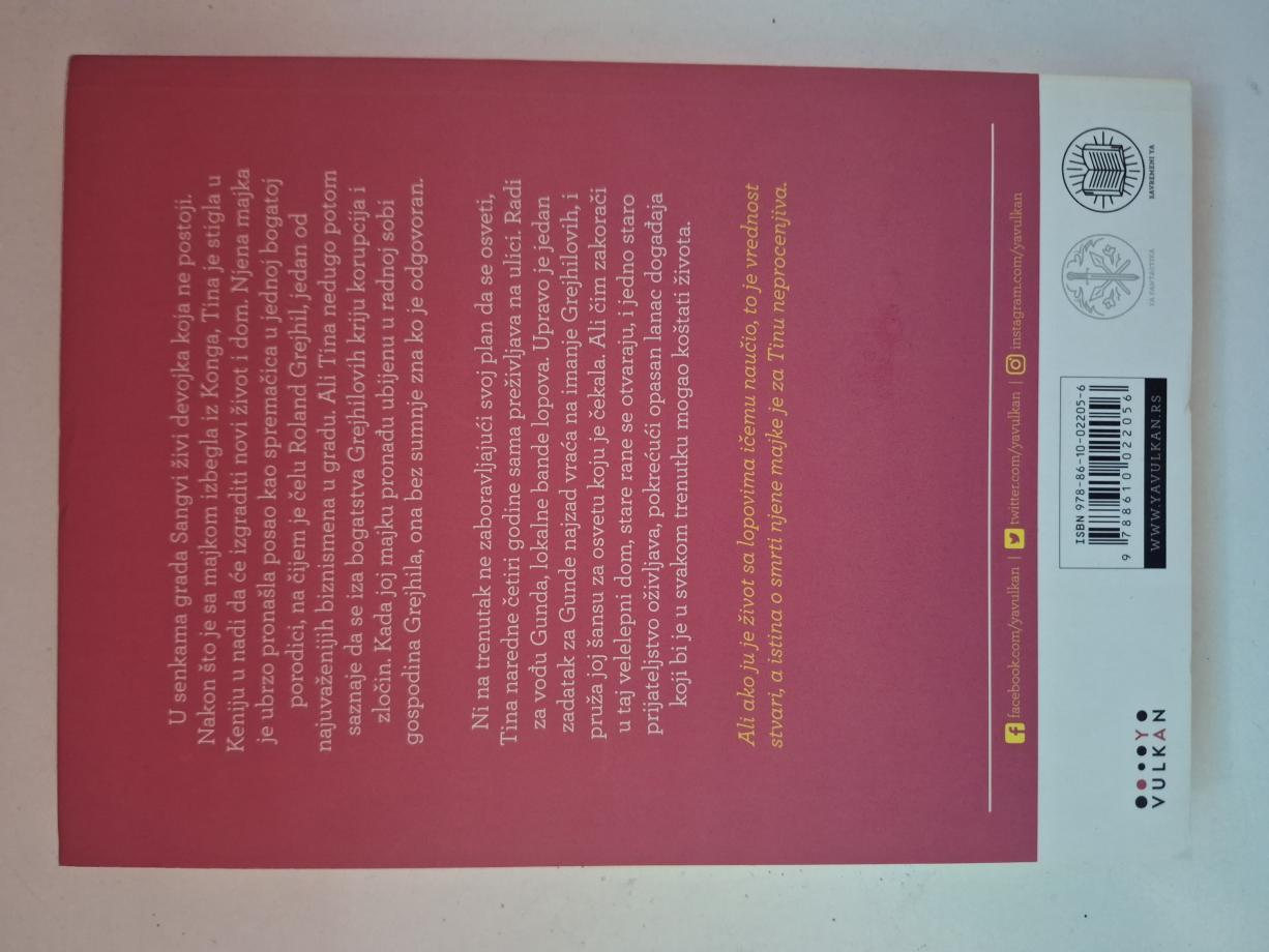U senkama grada Sangvi živi devojka koja ne postoji. Nakon što je sa majkom izbegla iz Konga, Tina je stigla u Keniju u nadi da će izgraditi novi život i dom. Njena majka je ubrzo pronašla posao kao spremačica u jednoj bogatoj porodici, na čijem je čelu Roland Grejhil, jedan od najuvaženijih biznismena u gradu. Ali Tina nedugo potom saznaje da se iza bogatstva Grejhilovih kriju korupcija i zločin. Kada joj majku pronađu ubijenu u radnoj sobi gospodina Grejhila, ona bez sumnje zna ko je odgovoran. Ni na trenutak ne zaboravljajući svoj plan da se osveti, Tina naredne četiri godine sama preživljava na ulici. Radi za vođu Gunda, lokalne bande lopova. Upravo je jedan zadatak za Gunde najzad vraća na imanje Grejhilovih, i pruža joj šansu za osvetu koju je čekala. Ali čim zakorači u taj velelepni dom, stare rane se otvaraju, i jedno staro prijateljstvo oživljava, pokrećući opasan lanac događaja koji bi je u svakom trenutku mogao koštati života. Ali ako ju je život sa lopovima ičemu naučio, to je vrednost stvari, a istina o smrti njene majke je za Tinu neprocenjiva.