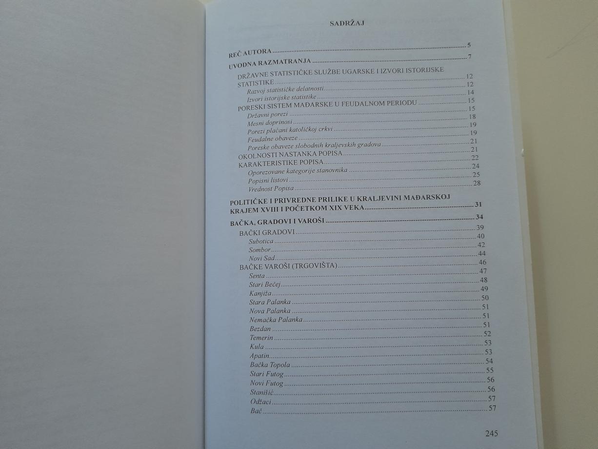 Rad je nastao motivisan namerom da se upoznaju saznajne mogućnosti analize Zemaljskog poreskog popisa iz 1828. godine i da se steknu, ukoliko je tomoguće, nova naučna saznanja o istoriji bačkih gradova i naselja s početka XIX veka.