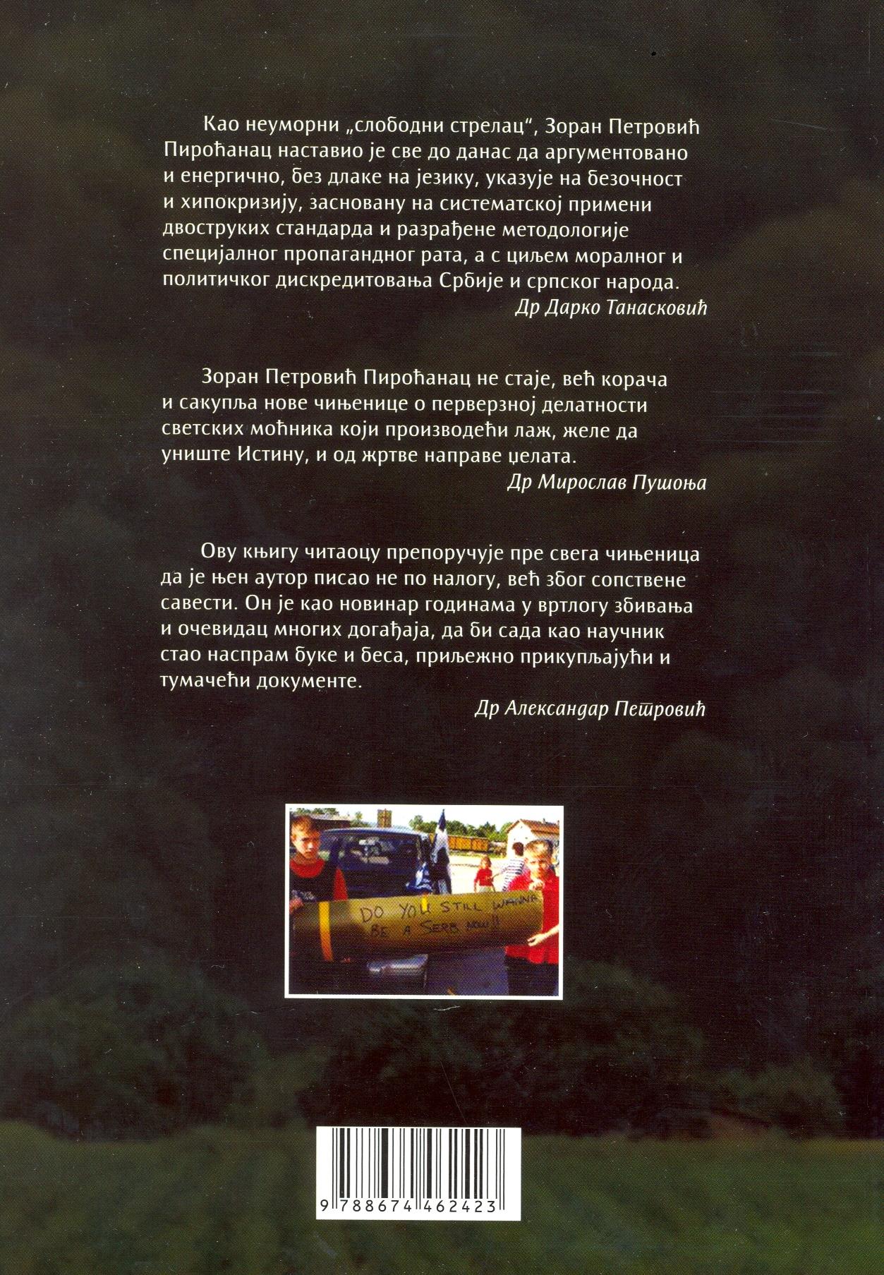 Kao neumorni „slobodni strelac“, Zoran Petrović Piroćanac nastavio je sve do danas da argumentovano i energično, bez dlake na jeziku i s one strane svake „političke korektnosti", ukazuje na bezočnost i hipokriziju, zasnovanu na sistematskoj primeni dvostrukih standarda i razrađene metodologije specijalnog propagandnog rata, svojstvene medijskom „pokrivanju" zbivanja na bivšem jugoslovenskom prostoru, a s ciljem moralnog i političkog diskreditovanja Srbije i srpskog naroda.