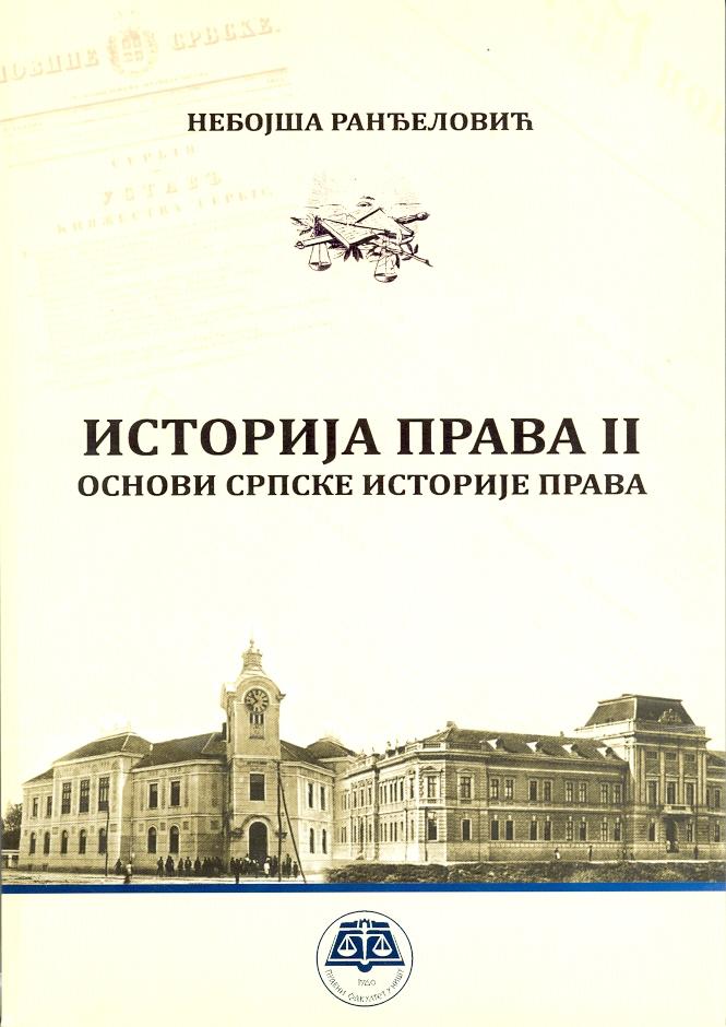 Udžbenik Istorija prava II - Osnovi srpske istorije prava prilagođen je programu predmeta Istorija prava, koji se izučava u prvom semestru na Pravnom fakultetu u Nišu. U skladu sa prirodom predmeta i činjenicom da se studenti prve godine prvi put susreću sa ovakvom materijom, određeni su način izlaganja i struktura ucbenika. Uz neminovna odstupanja, materija je izložena po hronološkom kriterijumu. Cilj ovakvog pristupa je da se studentima omogući sagledavanje uzročno-posledičnih veza između događaja i okolnosti koji su uslovili razvoj srpskog prava.