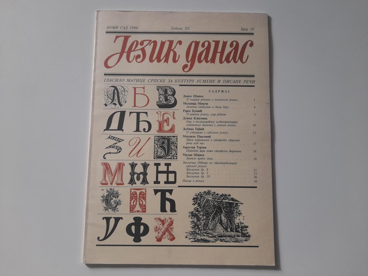 Jezik danas - Glasilo Matice srpske, Broj 10/1999