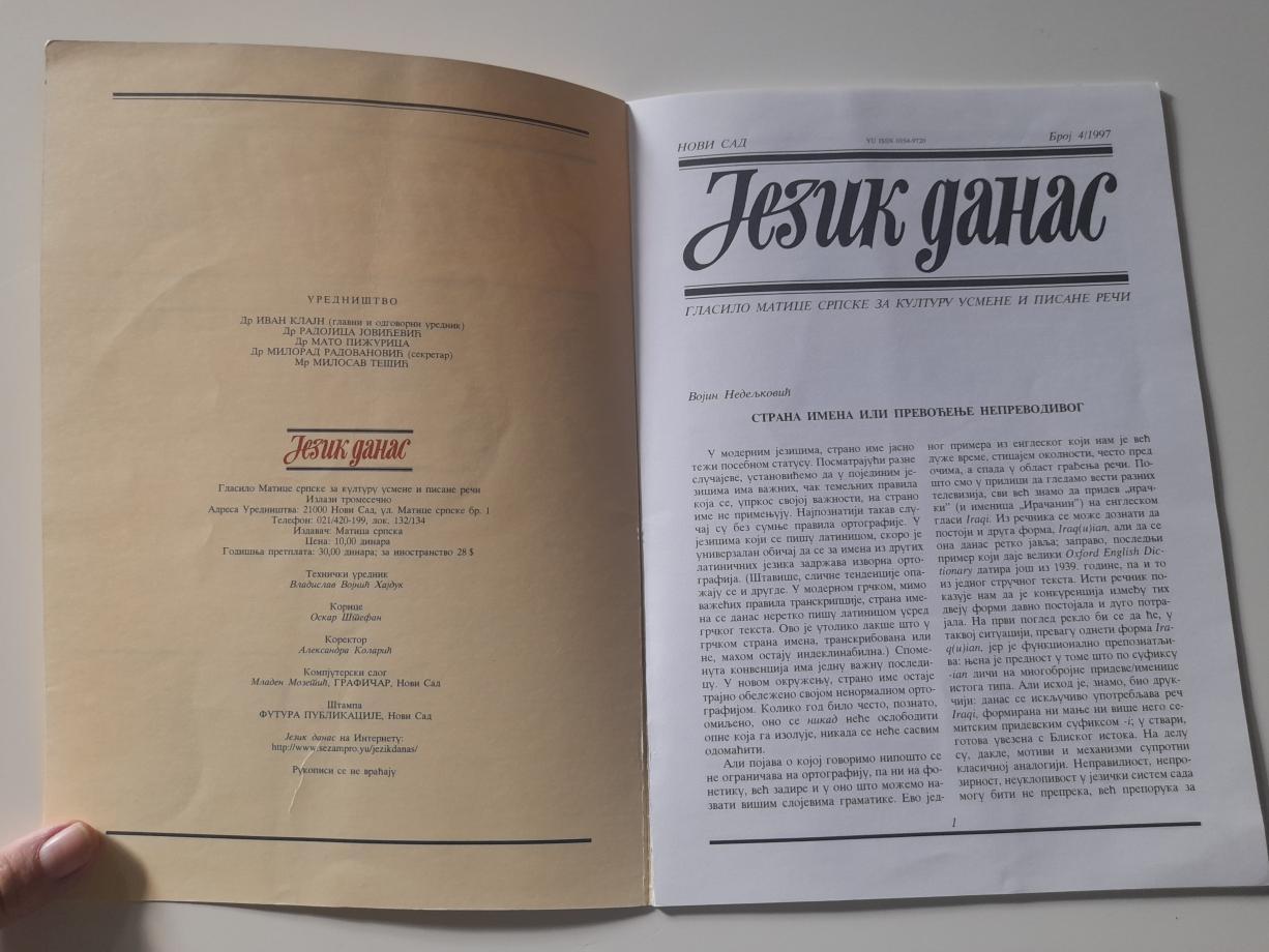 Jezik danas - Glasilo Matice srpske, Broj 4/1997