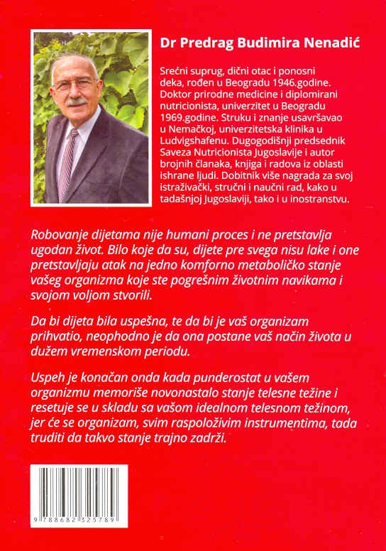 srećni suprug, dični otac i ponosni deka, rođen u Beogradu 1946.godine. Doktor prirodne medicine i diplomirani nutricionista, univerzitet u Beogradu 1969.godine. Struku i znanje usavršavao u Nemačkoj, univerzitetska klinika u Ludvigshafenu. Dugogodišnji predsednik Saveza Nutricionista Jugoslavije i autor brojnih članaka, knjiga i radova iz oblasti ishrane Ijudi. Dobitnik više nagrada za svoj istraživački, stručni i naučni rad, kako u tadašnjoj Jugoslaviji, tako i u inostranstvu.