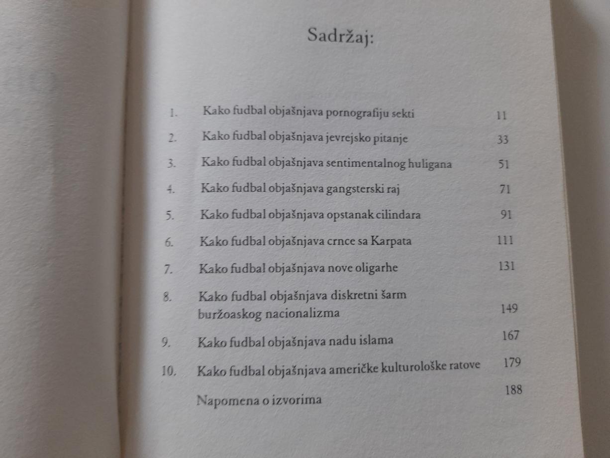 Od Brazila do Srbije, preko islamskog Irana, Italije, Španije i neizbježne Velike Britanije na čijem tlu je fudbal nastao, ova knjiga sve zainteresovane čitaoce i ljubitelje fudbala vodi na utakmicu koja pokazuje kako fudbal u sebi prelama probleme rasizma, nacionalizma, vjerskog fanatizma, sudar multinacionalnog i lokalnog kapitala, siromaštva i obespravljenosti prerastajući u fenomen koji je postao mnogo više od igre.