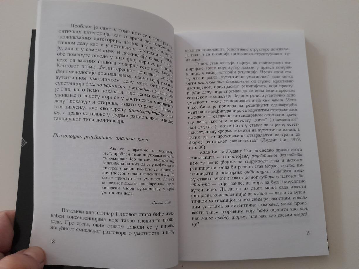 Prvo izdanje jedne od prvih knjiga koje su se bavile kičom u kulturi. Teorijski snažan pristup autora utemeljen je na pažljivim analizama pojava i manifestacija kiča u našoj i svetskoj literaturi. Petrović je prevashodno estetičar i otuda njegova zapažanja imaju i teorijsku podlogu ali i sud dobrog znalca istinski vrednog.