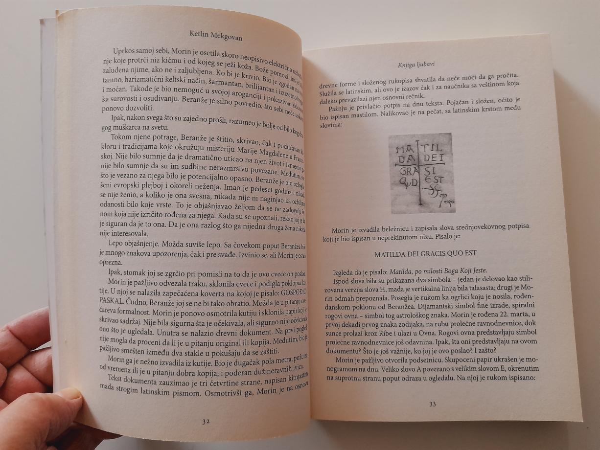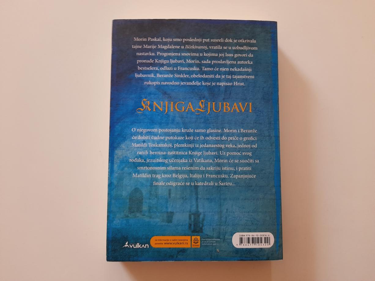Morin Paskal, koju smo poslednji put susreli dok je otkrivala tajne Marije Magdalene u Iščekivanoj, vratila se u obimnom nastavku. Progonjena snovima u kojima joj Isus govori da pronađe Knjigu ljubavi, Morin, sada proslavljena autorka bestselera, odlazi u Francusku. Tamo će njen otuđeni ljubavnik, Beranže Sinkler, obelodaniti da je taj tajanstveni rukopis navodno jevanđelje koje je napisao Hrist. O njegovom postojanju kruže samo glasine. Morin i Beranže će dobiti čudne putokaze koji će ih odvesti do priče o grofici Matildi Toskanskoj, plemkinji iz jedanaestog veka, jednoj od ranih heroina-zaštitnica Knjige ljubavi. Uz pomoć svog rođaka, jezuitskog učenjaka iz Vatikana, Morin će se suočiti sa smrtonosnim silama rešenim da sakriju istinu, i pratiti Matildin trag kroz Belgiju, Italiju i Francusku. Zapanjujuće finale odigraće se u katedrali u Šartru…