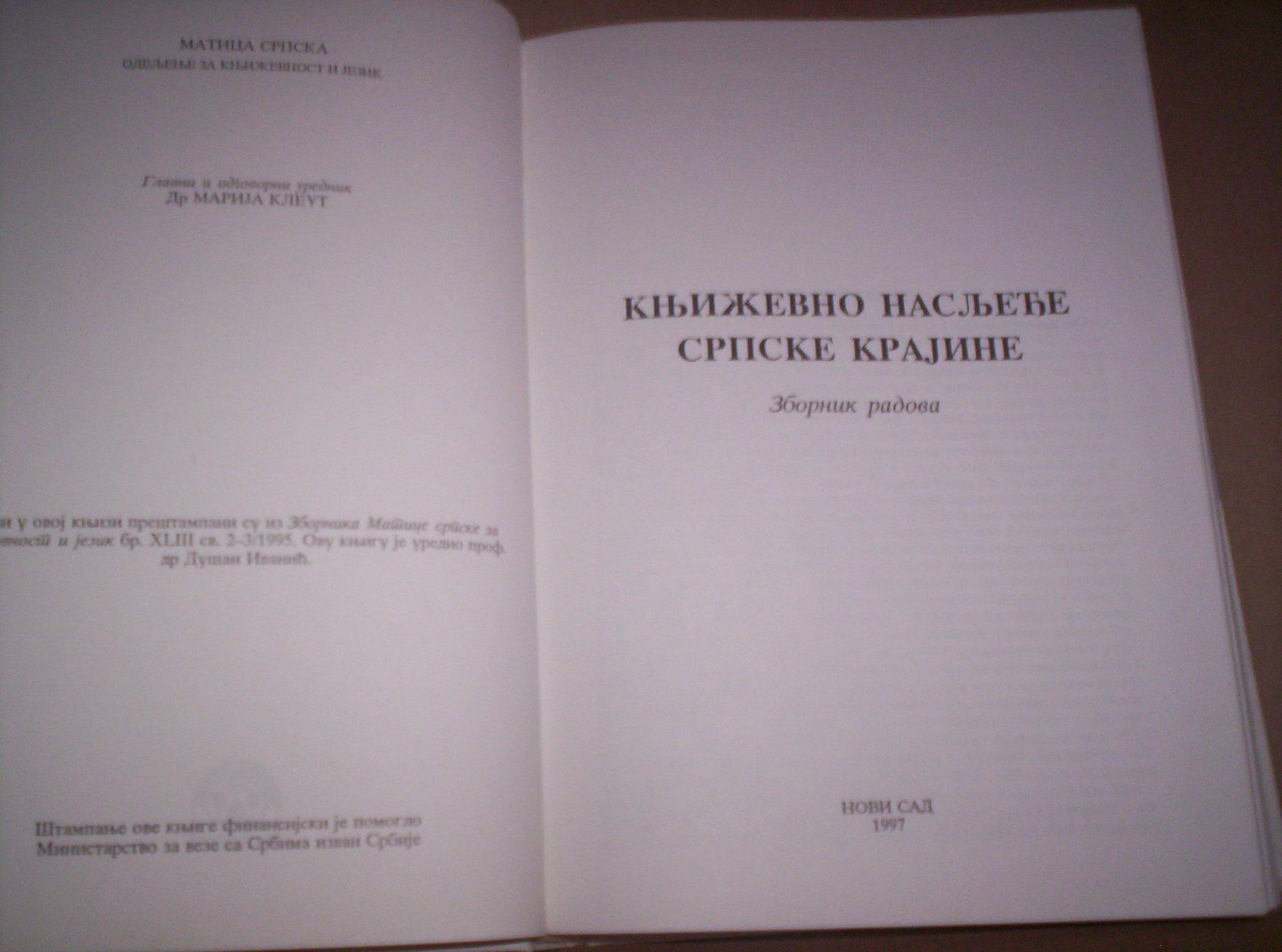 KNJIŽEVNO NASLJEĐE SRPSKE KRAJINE (zbornik)